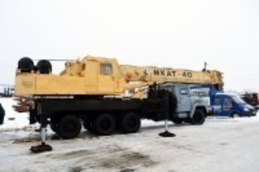 Грузоподъемность крана: 40 тонн. Вылет стрелы: 35 метра.