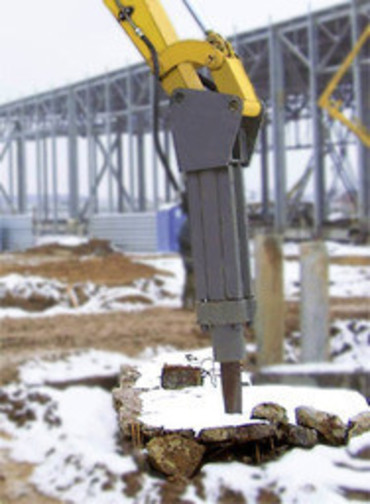 Гидромолот МГ300, благодаря высокоэффективной пике с длинной клинообразной рабочей частью и большой энергии удара до 3300Дж особенно эффективен при работе по разрыхлению мерзлых грунтов.