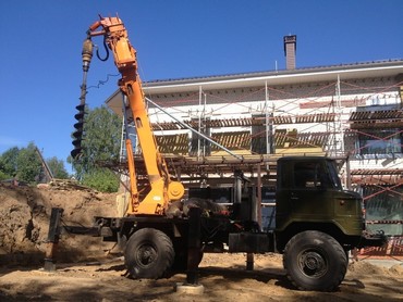 Бурение отверстий под заборы, сваи, столбы ЛЭП. Бурильная установка на базе экскаватора-погрузчика JCB. Диаметры 300, 400. Глубина до 4 м. Закручиваем винтовые сваи. ямобур