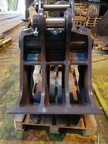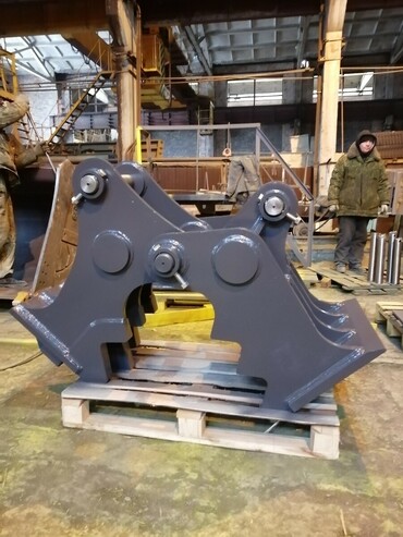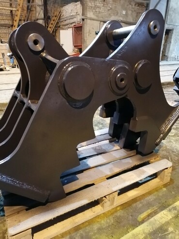 Оборудование состоит из двух челюстей, ребер жесткости и крепится к рукояти экскаватора. В действие приводится гидроцилиндром ковша.